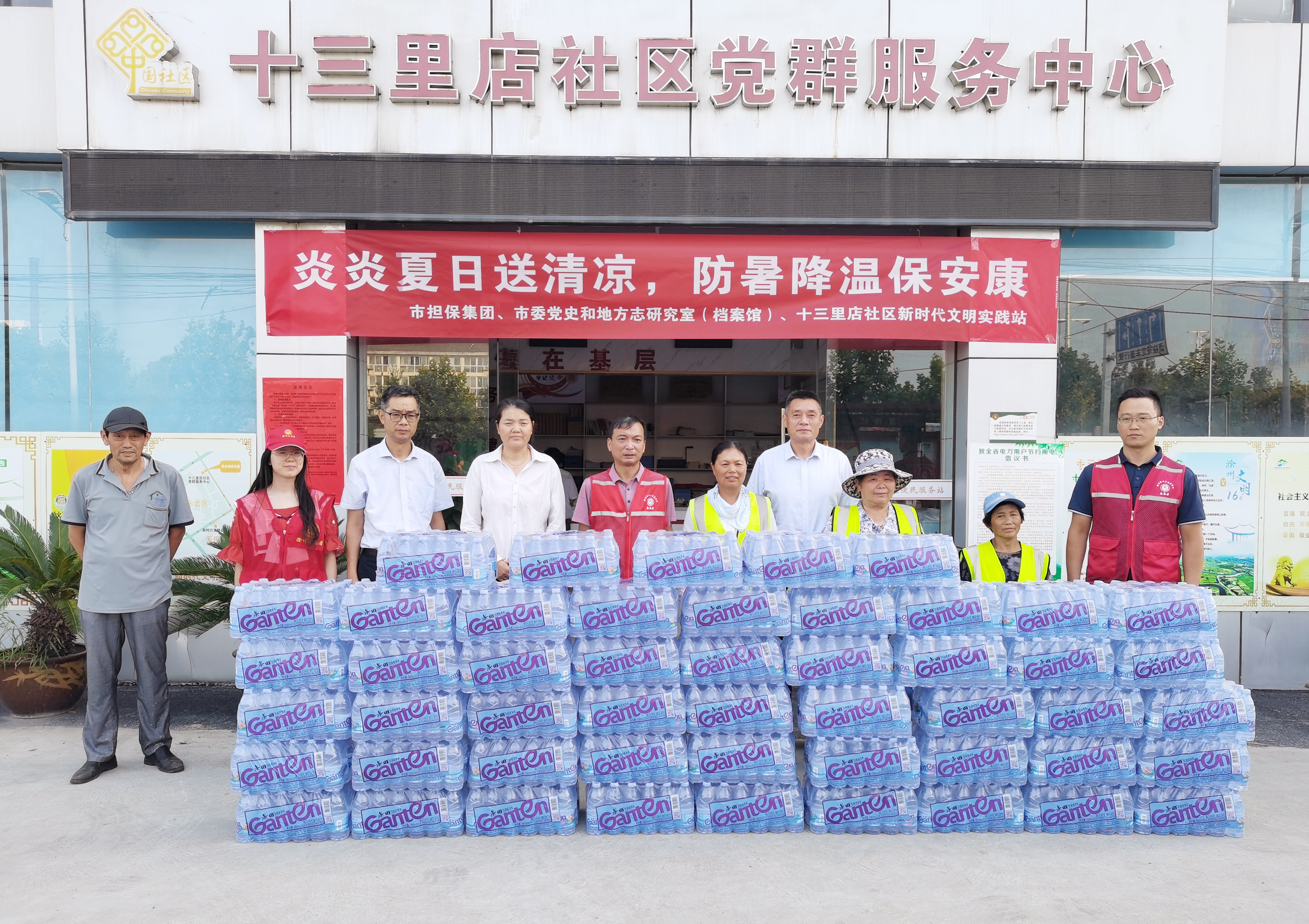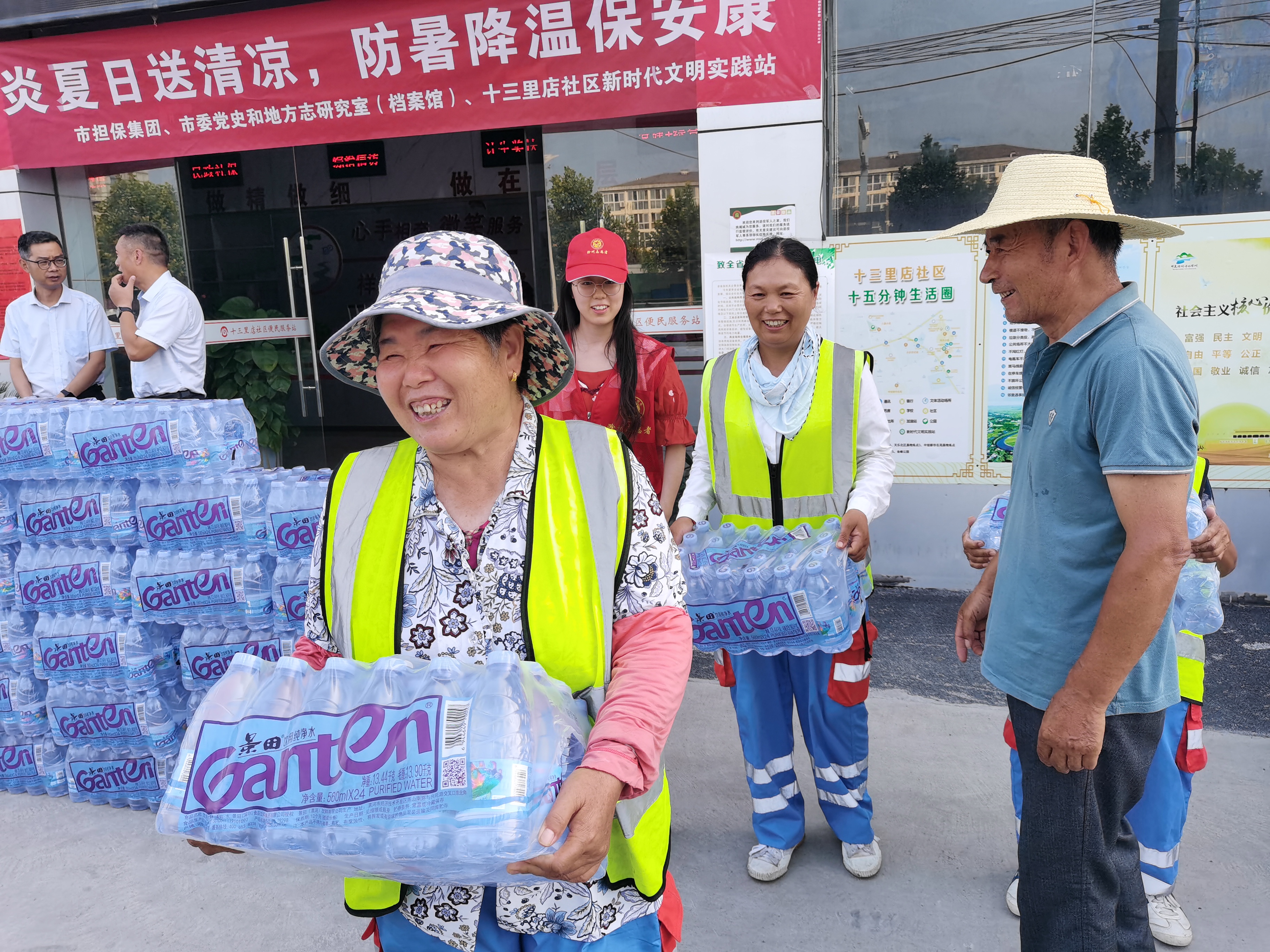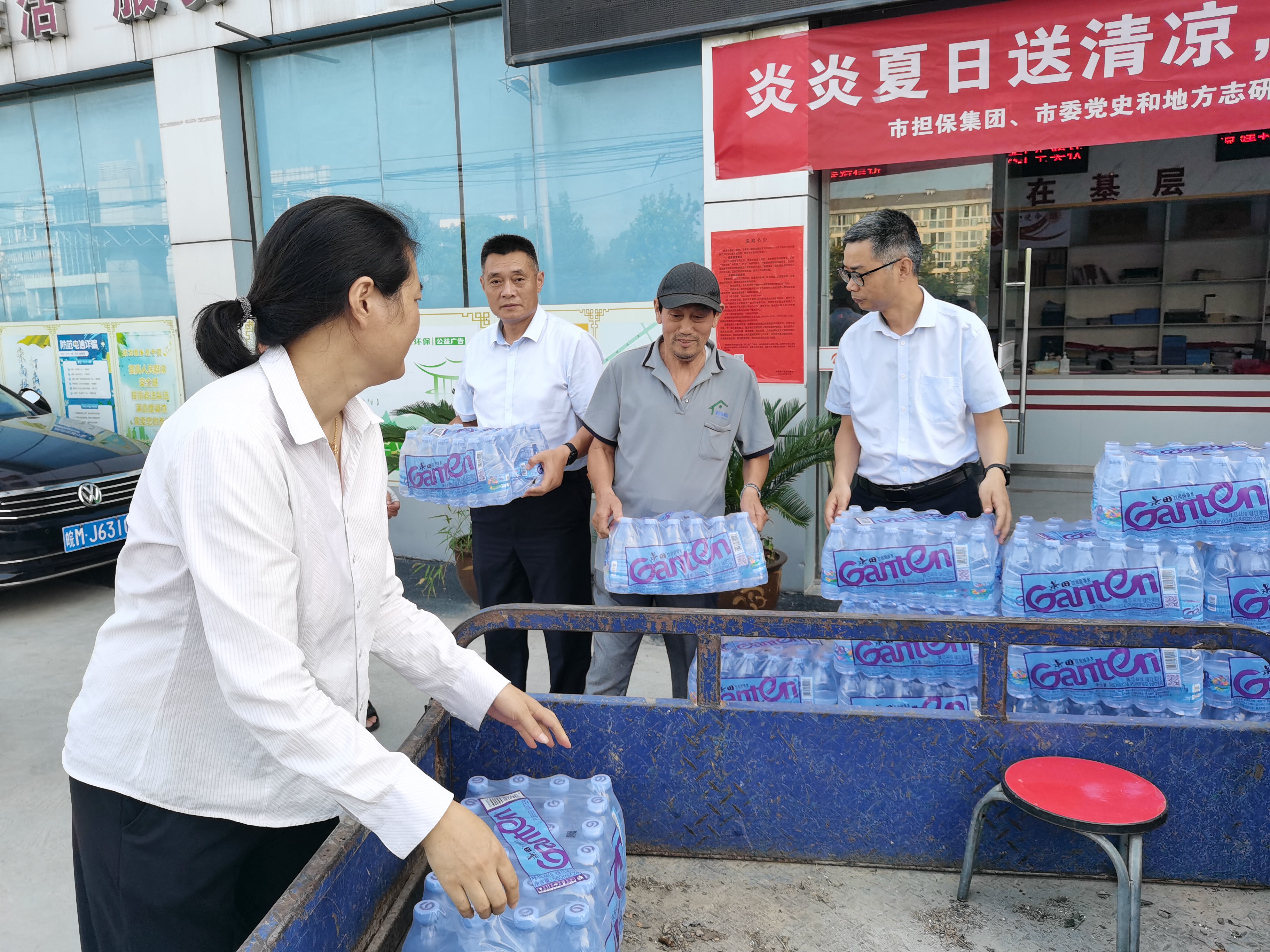連日來(lái),氣溫一直居高不下,處處熱浪滾滾,戶外作業(yè)的環(huán)衛(wèi)工人們頂烈日、冒酷暑,用辛勤的汗水換來(lái)干凈整潔的環(huán)境。為給他們送去一份清涼和關(guān)愛,市擔(dān)保集團(tuán)第一、第二黨支部聯(lián)合市委黨史辦、十三里店社區(qū)黨組織共同開展以“ 炎炎夏日送清涼,防暑降溫保安康”為主題的夏送清涼主題黨日活動(dòng),有效推動(dòng)黨群融合,持續(xù)推進(jìn)“我為群眾辦實(shí)事 ”實(shí)踐活動(dòng)走深走實(shí)。