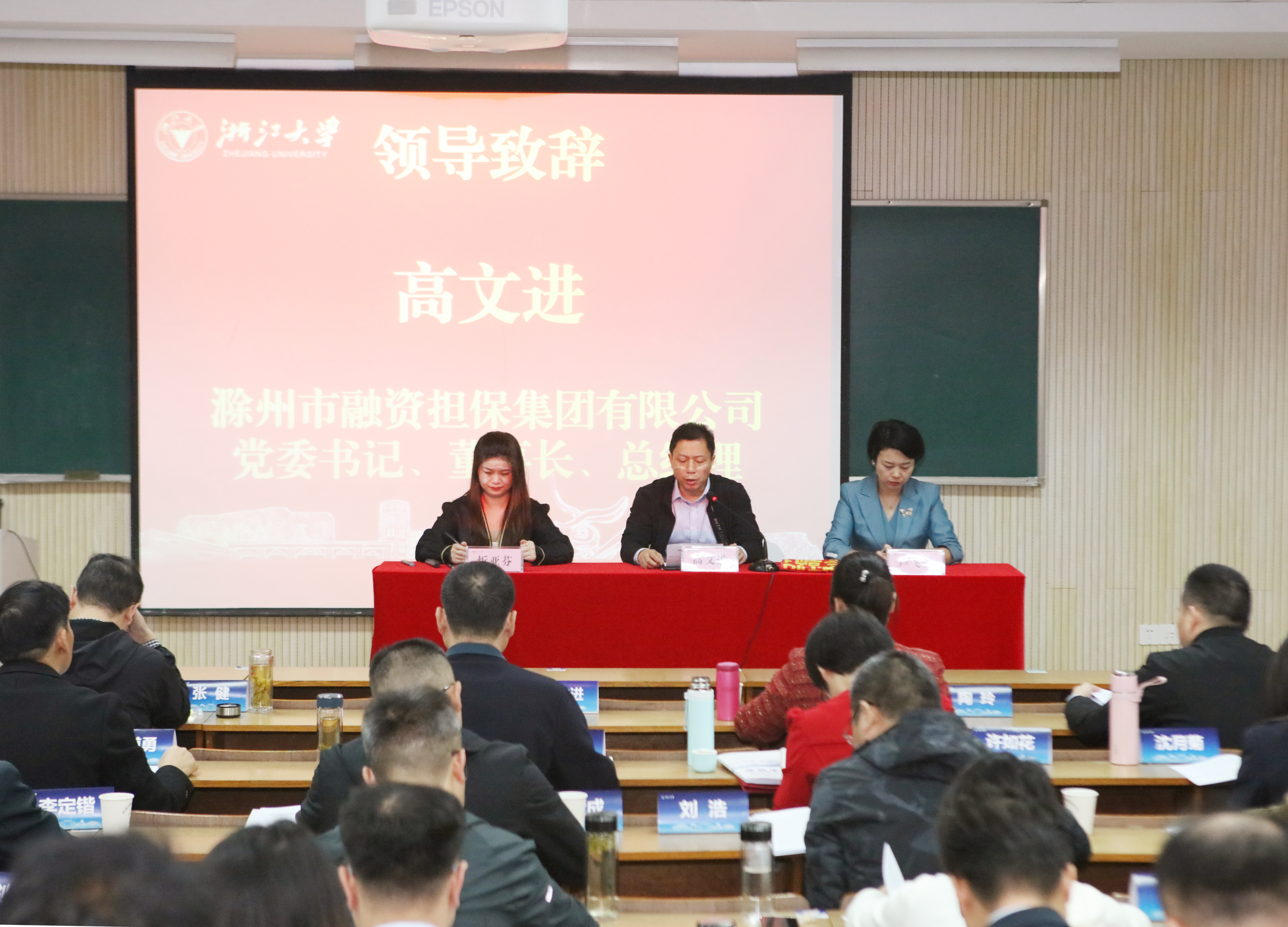 開班儀式上,浙江大學(xué)經(jīng)濟(jì)學(xué)院黨委副書記盧飛霞致歡迎辭,詳細(xì)介紹了浙江大學(xué)的發(fā)展歷史、辦學(xué)情況和本次培訓(xùn)班的課程設(shè)置、師資力量。滁州市擔(dān)保集團(tuán)黨委書記、董事長、總經(jīng)理高文進(jìn)對(duì)浙江大學(xué)認(rèn)真籌備、精心安排本次培訓(xùn)班表示衷心感謝,并提出三點(diǎn)要求:一是提高“我要學(xué)”的思想認(rèn)識(shí),常懷“本領(lǐng)恐慌”之心,常有“能力危機(jī)”之感。二是明確“學(xué)什么”的目標(biāo)定位,找準(zhǔn)與融資擔(dān)保工作實(shí)際的契合點(diǎn)發(fā)力點(diǎn),明晰今后工作的總體思路和前進(jìn)方向。三是做好“怎么學(xué)”的行動(dòng)落實(shí),要端正學(xué)習(xí)態(tài)度,講究學(xué)習(xí)方法,嚴(yán)格遵守各項(xiàng)紀(jì)律。