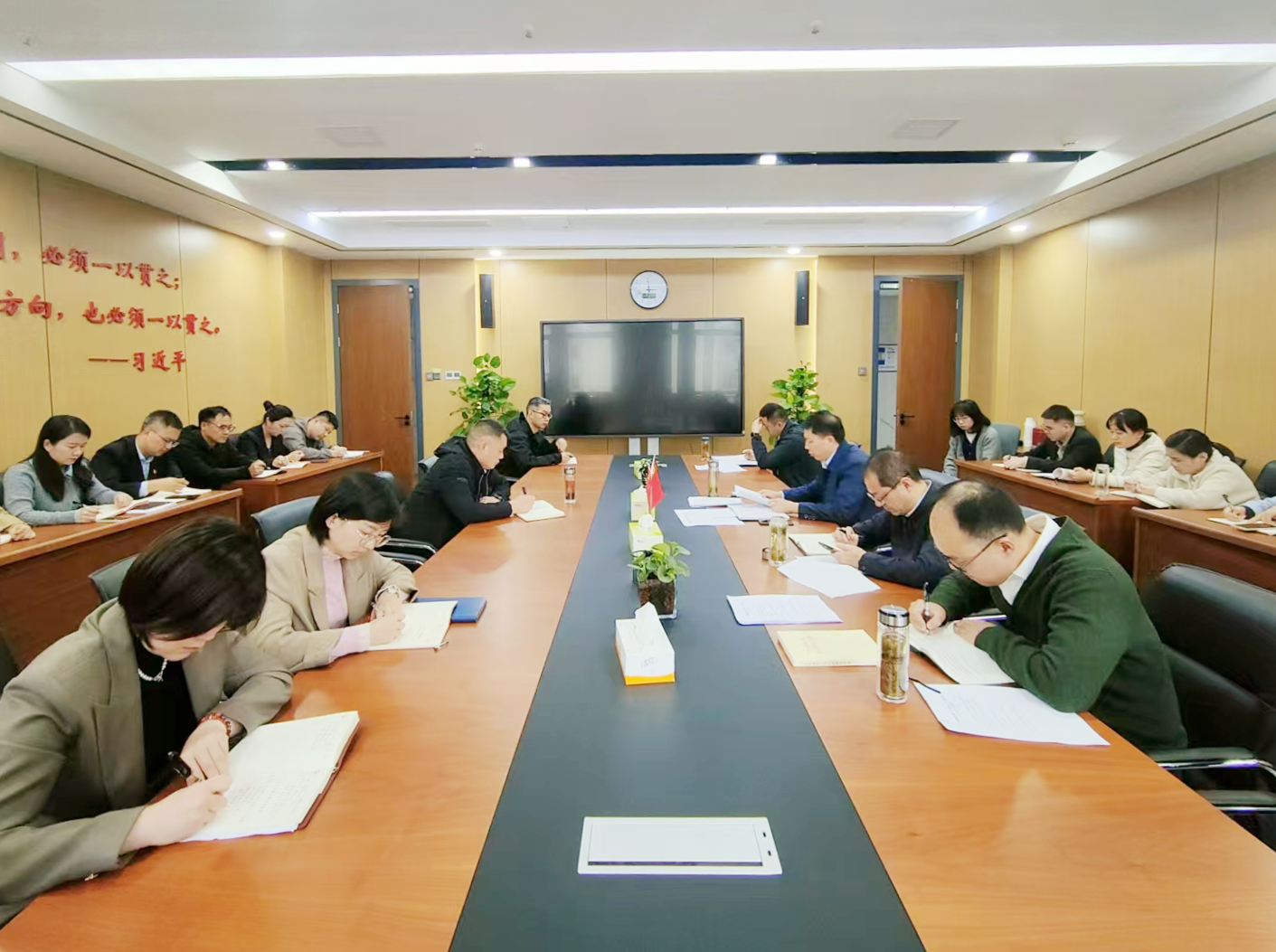 會(huì)議強(qiáng)調(diào),習(xí)近平總書記考察安徽重要講話精神具有極強(qiáng)的政治性、思想性、指導(dǎo)性和針對(duì)性,是指引安徽各項(xiàng)事業(yè)發(fā)展的根本遵循。要深刻領(lǐng)會(huì)精髓要義,做到逐字學(xué)習(xí)、心領(lǐng)神會(huì)、系統(tǒng)把握,充分認(rèn)識(shí)習(xí)近平總書記此次考察安徽的里程碑意義,深刻領(lǐng)悟習(xí)近平總書記關(guān)于新征程安徽發(fā)展的總要求,把握豐富內(nèi)涵,吃透精髓要義。要迅速興起學(xué)習(xí)宣傳貫徹?zé)岢保?/strong>把學(xué)習(xí)貫徹總書記重要講話與學(xué)習(xí)貫徹總書記2016年、2020年考察安徽重要講話精神結(jié)合起來,與學(xué)習(xí)貫徹黨的二十大和二十屆三中全會(huì)精神結(jié)合起來,一體深學(xué)細(xì)悟、整體融會(huì)貫通、堅(jiān)決貫徹落實(shí),統(tǒng)籌抓好學(xué)習(xí)傳達(dá)、宣傳宣講、教育培訓(xùn)等工作,持續(xù)提升“學(xué)”的實(shí)效,奮發(fā)“干”的熱情。要結(jié)合職能抓好四季度工作落實(shí),對(duì)標(biāo)對(duì)表逐一盤點(diǎn),強(qiáng)化調(diào)度,扎實(shí)有序推進(jìn)各項(xiàng)工作落實(shí),確保全年目標(biāo)任務(wù)圓滿收官;深化巡察整改工作,建立整改全過程閉環(huán)管理,確保整改成效;更好統(tǒng)籌發(fā)展和安全,加強(qiáng)辦公場(chǎng)所安全管理,加大資金風(fēng)險(xiǎn)、意識(shí)形態(tài)風(fēng)險(xiǎn)、廉政風(fēng)險(xiǎn)等防控力度,為集團(tuán)穩(wěn)定發(fā)展筑牢安全防線。