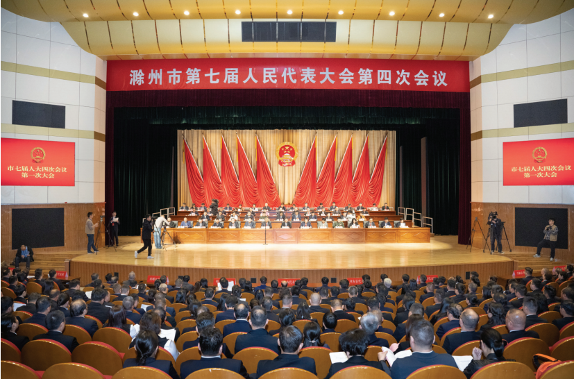 大會會場氣氛熱烈、莊重。主席臺帷幕中央,鮮艷的紅旗簇?fù)碇f嚴(yán)的國徽。二樓眺臺上懸掛的“深入學(xué)習(xí)貫徹習(xí)近平總書記考察安徽重要講話精神,真抓實(shí)干、創(chuàng)先爭優(yōu),奮力譜寫現(xiàn)代化新滁州建設(shè)新篇章!”大幅標(biāo)語鼓舞人心,催人奮進(jìn)。