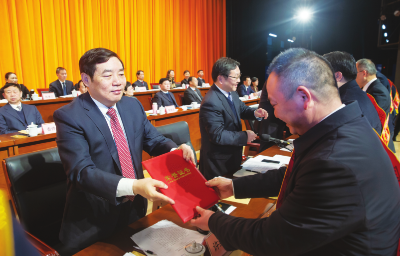市領(lǐng)導(dǎo)為2021年全市新獲評(píng)省級(jí)以上高層次人才代表頒發(fā)榮譽(yù)證書(shū)。